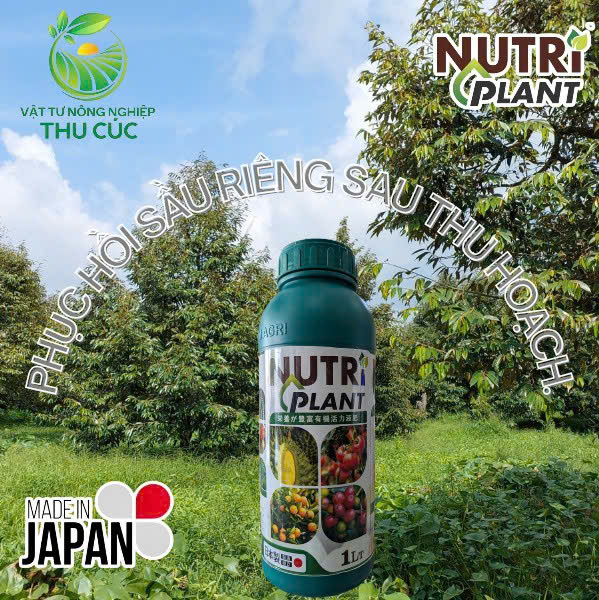 Nutri Plant là chế phẩm dinh dưỡng cao cấp nhập khẩu từ Nhật Bản (Made in Japan), được nghiên cứu chuyên biệt để phục hồi sầu riêng sau thu hoạch. Sản phẩm bổ sung trung – vi lượng thiết yếu, giúp cây tái tạo bộ lá, phục hồi rễ, tăng sức đề kháng và chuẩn bị cho mùa vụ tiếp theo.