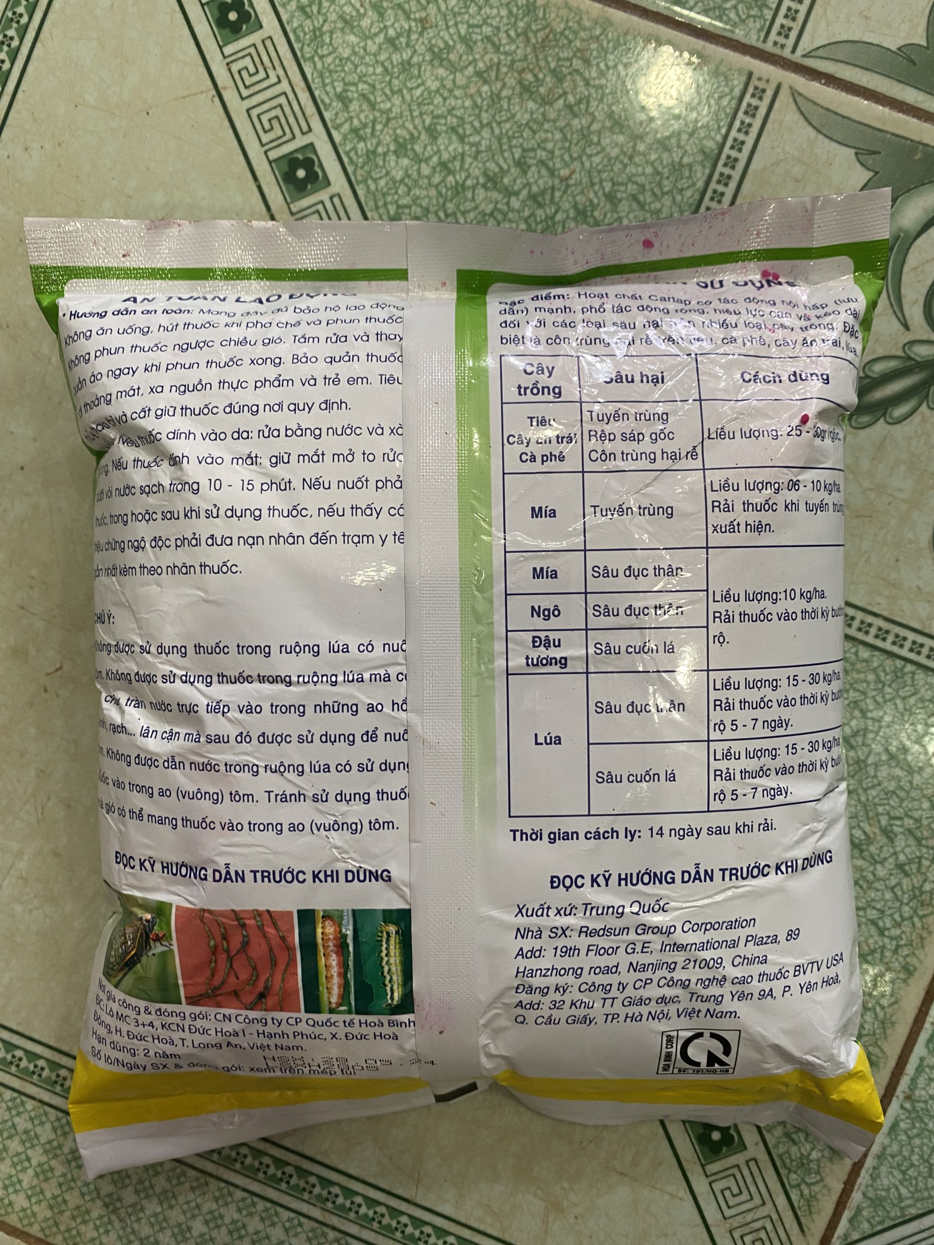 Liều lượng: Rải từ 8 – 12 Kg/ha (tùy loại cây trồng và đối tượng sâu hại).