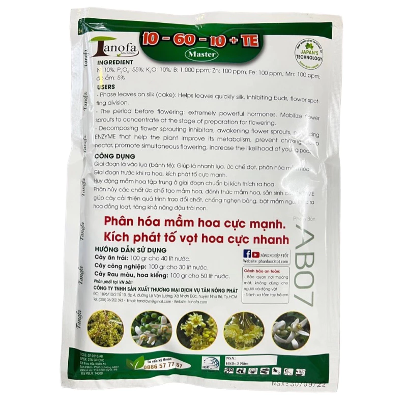 THÀNH PHẦN: N: 10; P: 60; K: 10 + TE (Cu, Fe, Zn, B, Mn)