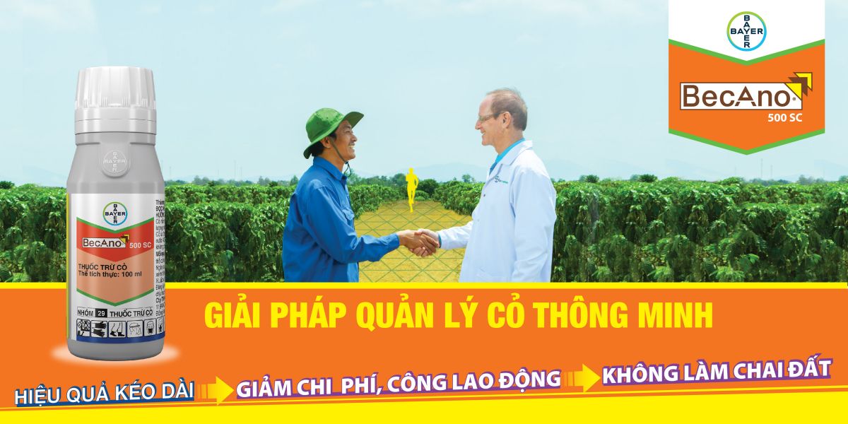 Đáp ứng những mong mỏi của nhà nông về một sản phẩm thuốc trừ cỏ an toàn, tiết kiệm, dễ sử dụng và hiệu quả, Bayer đã giới thiệu sản phẩm Thuốc trừ cỏ BecAno 500SC. Đây là thuốc trừ cỏ tiền nảy mầm – không chọn lọc của Bayer – sử dụng trên cây lâu năm với nhiều cộng dụng nổi bật:
