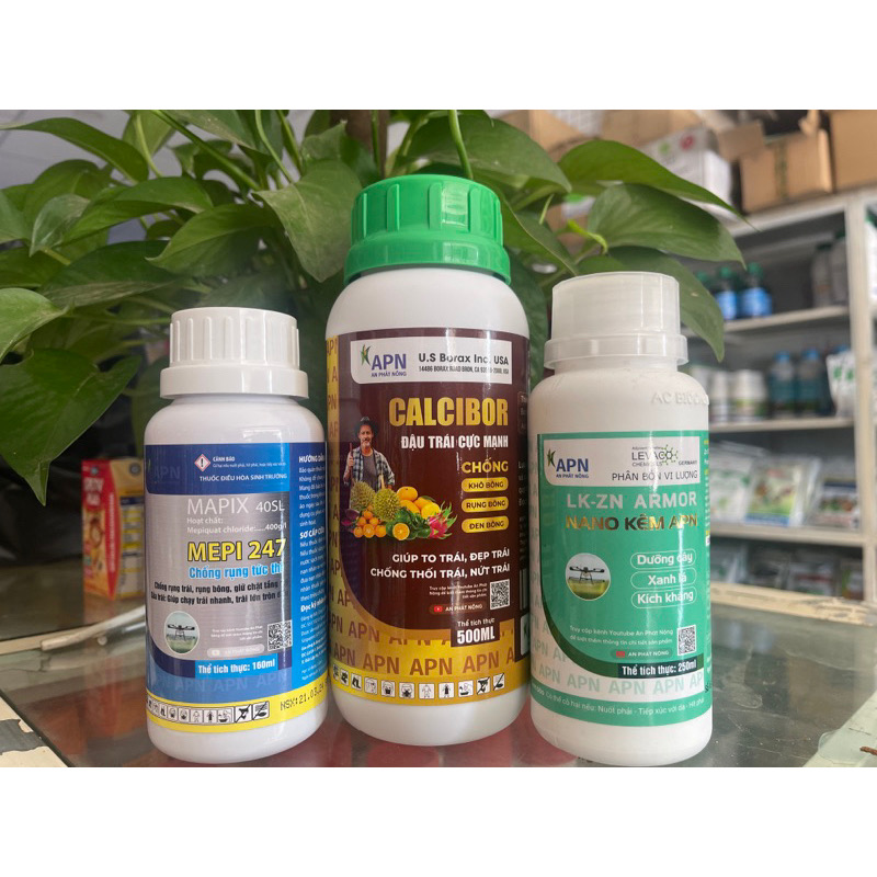 Bộ chống rụng trái sầu riêng An Phát Nông là giải pháp chuyên sâu giúp hạn chế rụng hoa – rụng trái non, tăng tỷ lệ đậu trái và nuôi trái bền vững. Sự kết hợp hoàn hảo giữa Cacibor – Nano Kẽm – MEPI giúp bổ sung đầy đủ Canxi, Bo, Kẽm và dưỡng chất thiết yếu, hỗ trợ sầu riêng phát triển ổn định trong giai đoạn mẫn cảm.