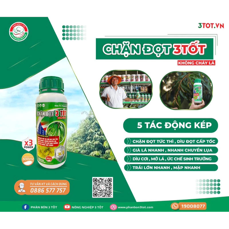 Công thức: 1 chai pha 200L ( Chặn đọt), pha 300L 👉Dìu đọt. Nên kết hợp Silver hoặc Kali hữu cơ 3 Tốt để đạt hiệu quả tốt nhất.