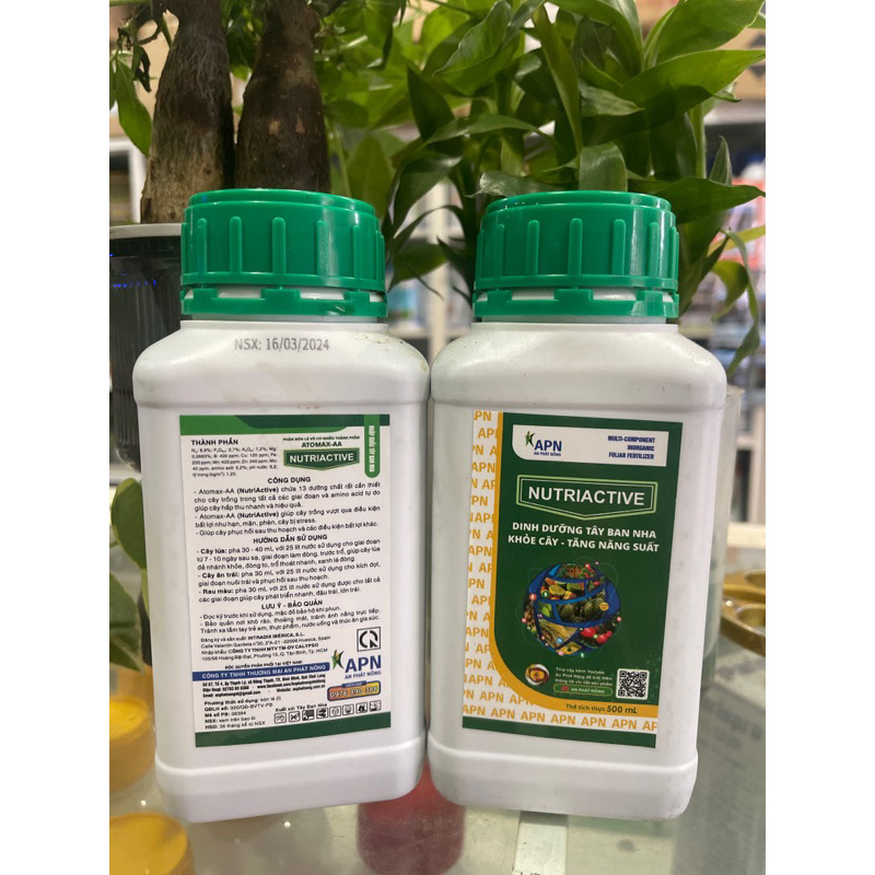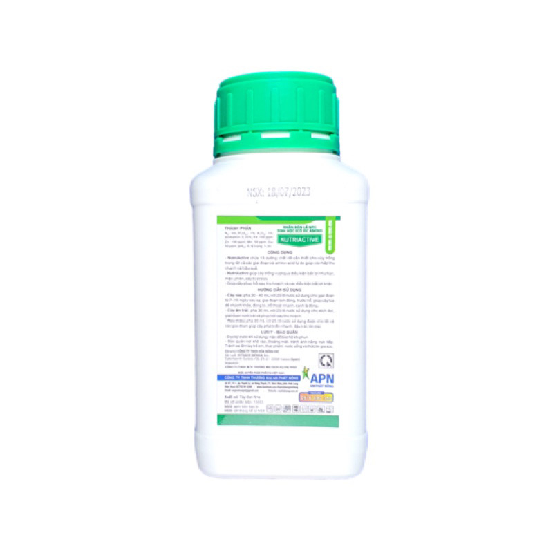 NUTRIACTIVE là dinh dưỡng cao cấp từ Tây Ban Nha, được cấu tạo như nhựa sống cây trồng, hoàn hảo về thành phần dưỡng chất, cây hấp thu ngay sau khi phun. Công nghệ Tây Ban Nha tạo ra dung dịch đồng nhất, không tách lớp. Sản phẩm được sử dụng giúp ruộng lúa nhiễm muỗi hành trổ bông, khắc phục bệnh vàng cam.