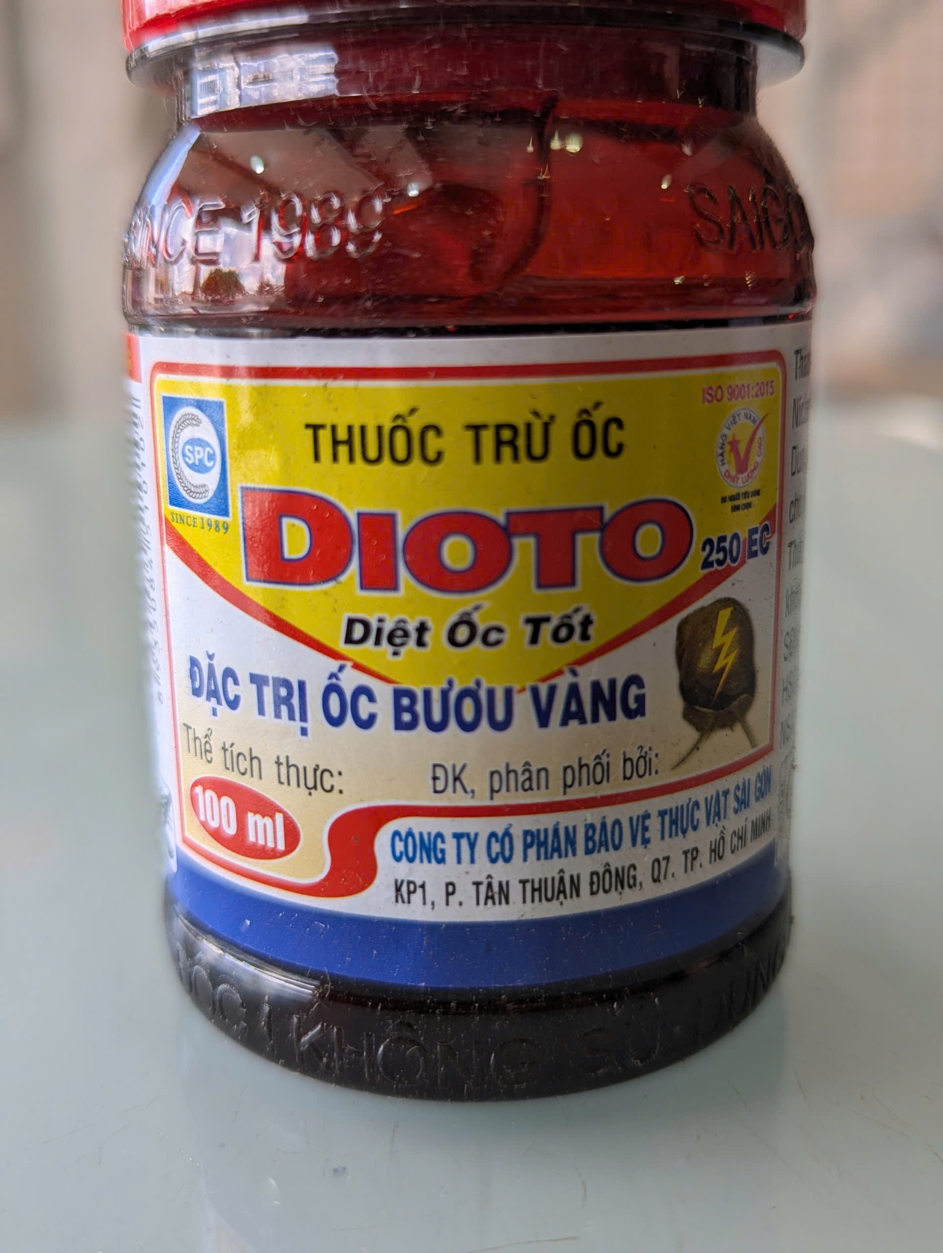 Ốc bươu vàng là một trong những dịch hại nguy hiểm trên lúa và nhiều loại cây trồng, gây thất thoát năng suất đáng kể. DIOTO 250 EC là giải pháp diệt ốc hiệu quả, được bà con nông dân tin tưởng nhờ khả năng diệt nhanh, triệt để và an toàn cho cây trồng.