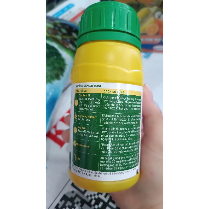Cách sử dụng: Kích ra rễ, thúc tược, “vọt” bông, trái mau lớn. Phun phục hồi cây sau thu hoạch, trước khi ra hoa và lúc đang nuôi trái.