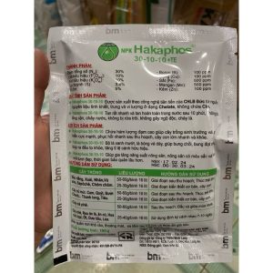 • Hakaphos 30-10-10+TE Chứa hàm lượng đạm cao giúp cây trồng sinh trưởng và phát triển cực mạnh, phục hồi nhanh sau thu hoạch, cây con lớn nhanh và khỏe