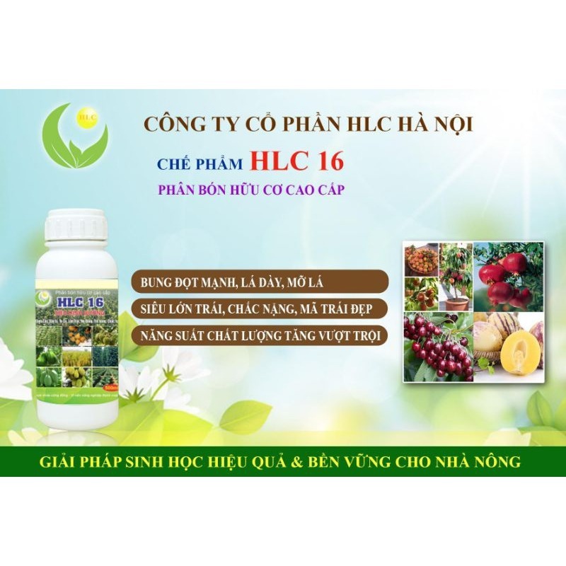 – HLC 16 không chỉ là một loại phân bón thông thường mà bên cạnh các thành phần N, P, K còn có các nguyên tố Vi lượng, chất hữu cơ và chất kích thích sinh trưởng được tạo ra bằng kỹ thuật lên men sinh học tiên tiến.