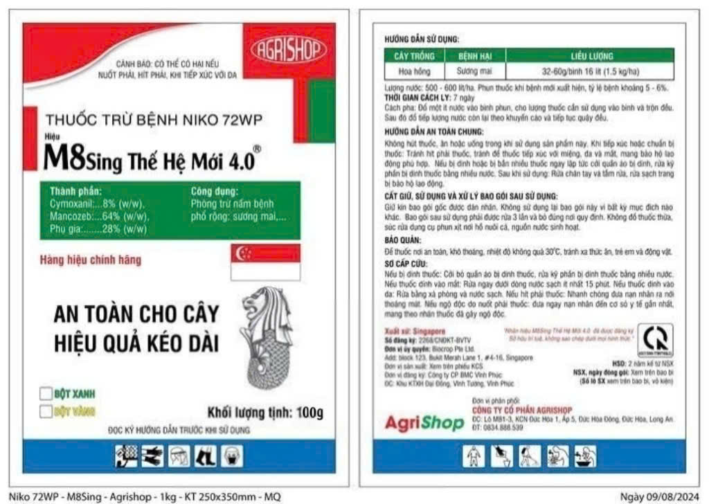 Nếu bà con đang tìm giải pháp phòng và trị nấm bệnh hiệu quả cho cây trồng, thì M8-Singapore (Niko 720WP) 100g chính là sự lựa chọn hoàn hảo, giúp bảo vệ mùa màng và nâng cao năng suất vượt trội.
