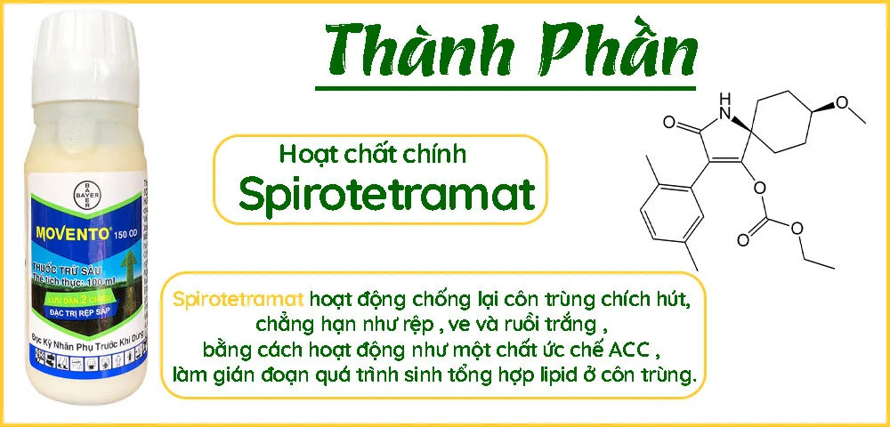– Movento là thuốc trừ sâu thế hệ mới, tác động vị độc, lưu dẫn hai chiều. Thuốc có hiệu quả cao, kéo dài trên côn trùng chích hút & các loại côn trùng khác.