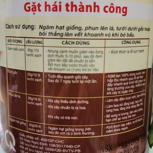 Mục đích sử dụng Liều lượng khuyến nghị Cách dùng Phun lá/tưới gốc 10 – 20gr/16 lít nước Pha đều, phun ướt đều thân lá hoặc tưới gốc. Dùng định kỳ 7 – 10 ngày/lần Ngâm hạt giống 5 – 10gr/1 lít nước Ngâm hạt từ 2 – 4 giờ trước khi gieo để tăng tỷ lệ nảy mầm Giai đoạn ra hoa – đậu trái 15 – 20gr/16 lít Phun định kỳ để kích hoa, tăng tỷ lệ đậu trái 📌 Lưu ý: Lắc đều trước khi sử dụng. Nên sử dụng vào sáng sớm hoặc chiều mát để đạt hiệu quả cao nhất.