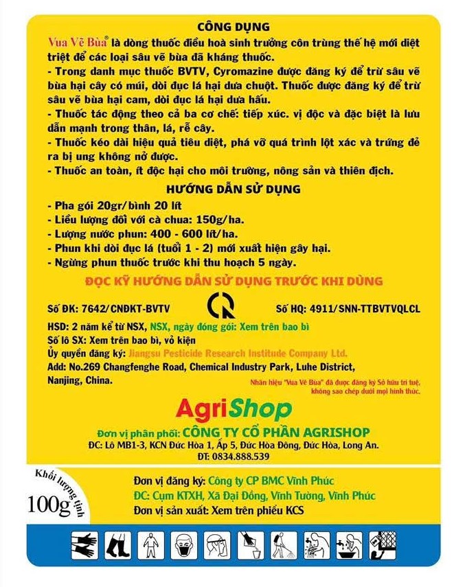 | Cà chua, ớt, dưa leo | Sâu vẽ bùa, dòi đục lá | 10–15g/ bình 16–20 lít nước | Phun đều khi sâu mới xuất hiện |