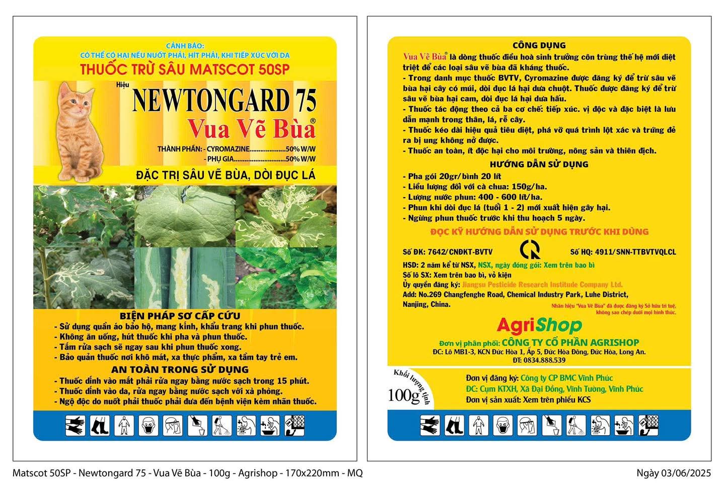 NEWTONGARD 75 là thuốc trừ sâu diệt trừ sâu vẽ bùa và dòi đục lá với công thức dạng bột hòa tan (WP), dễ sử dụng, thẩm thấu nhanh và có hiệu lực kéo dài.