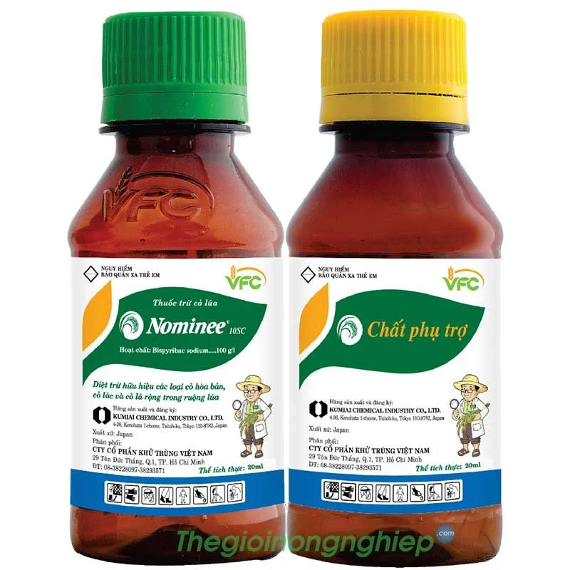 -Nominee 10SC là thuốc trừ cỏ hậu nẩy mầm , diệt hầu hết các loại cỏ phổ biến trong ruộng lúa như : cỏ lồng vực , cỏ cháo , cỏ chác , cỏ u du , rau mác , rau bợ .