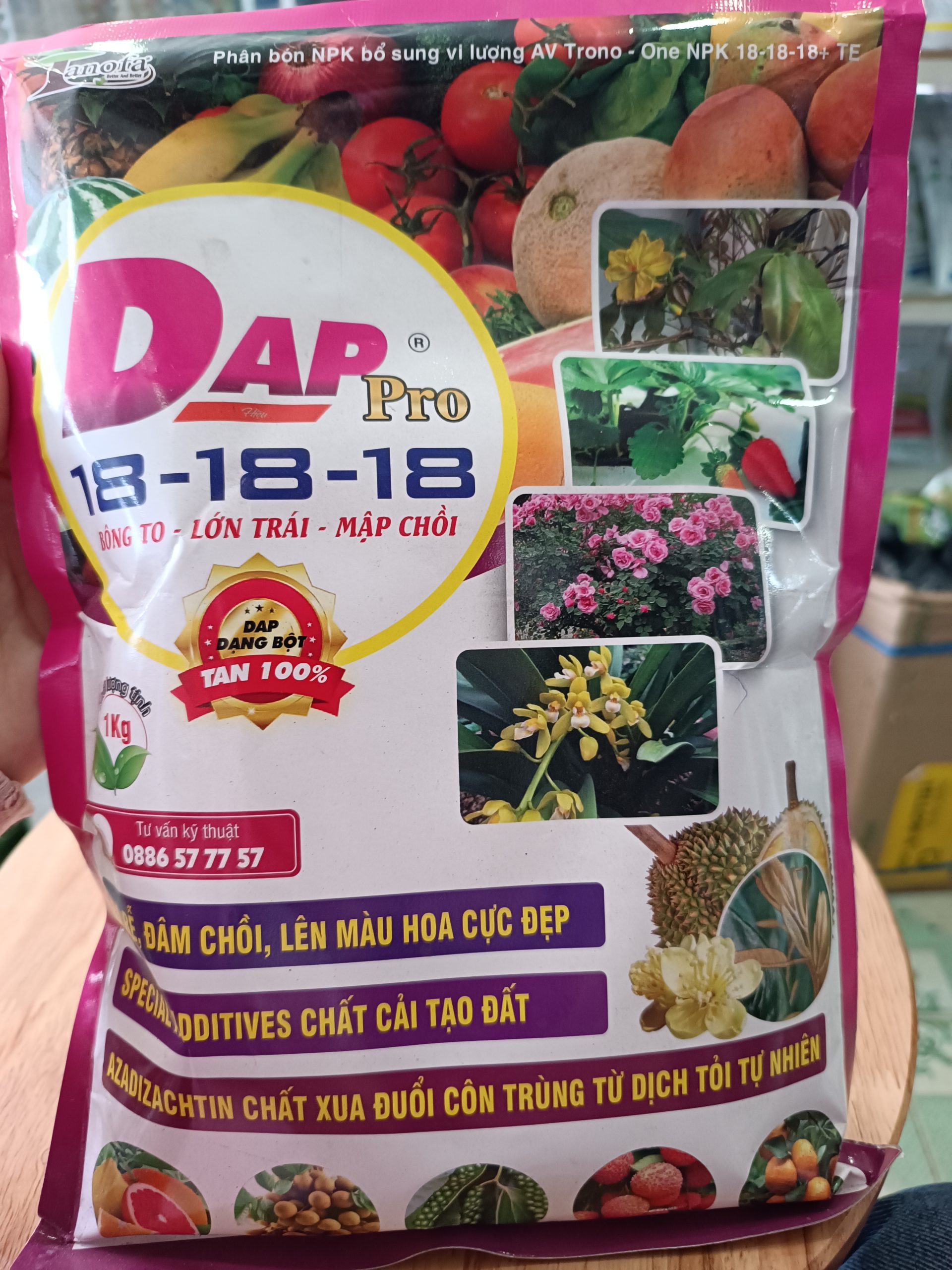 NPK Hữu Cơ Khoáng 18-18-18, gói 1kg | Cty 3 Tốt, Bông To – Lớn Trái – Mập Chồi