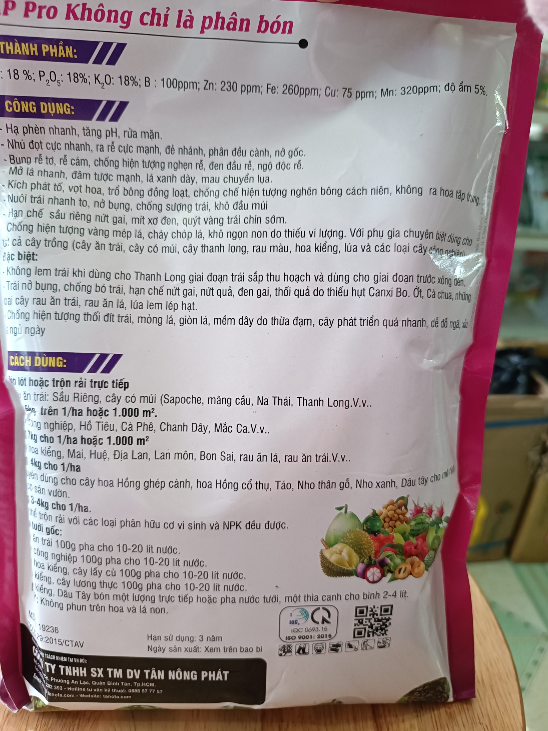 Thành Phần: N: 18%; P: 18%: K: 18% + TE (B: 100ppm; Zn: 230ppm; Fe: 260ppm; Cu: 75ppm; Mn: 320ppm)