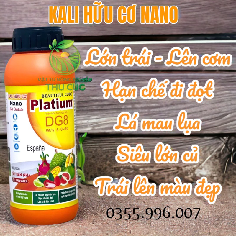 KALI HỮU CƠ – PLATIUM DG8 GELL CHELATE Giúp lá xanh dầy, lá nhanh chuyển lụa, giảm đi đọt.
