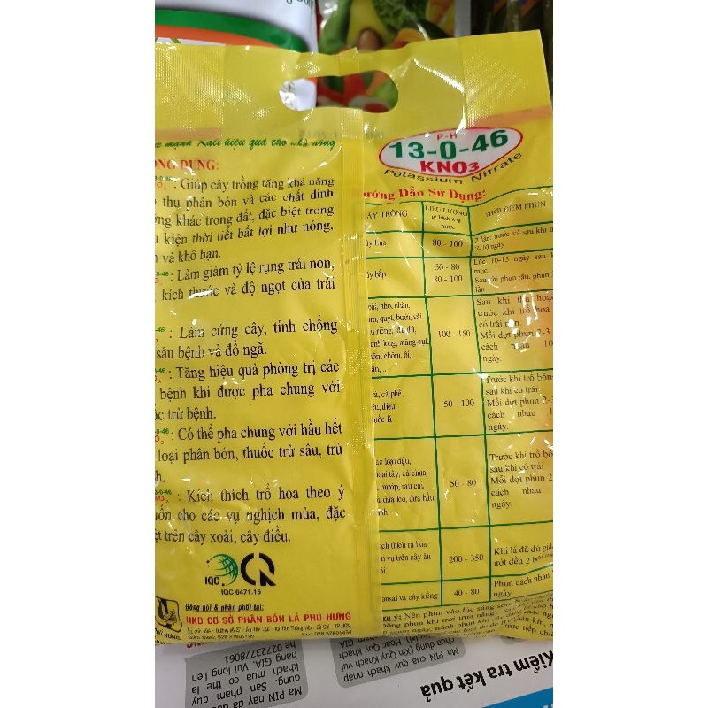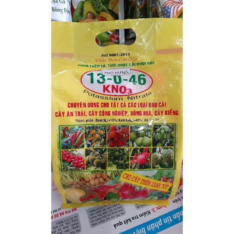 – Với hàm lượng Kali cao KNO3 13-0-46 là sản phẩm được ưa chuộng sử dụng vào giai đoạn hình thành thịt quả, có thể sử dụng trước khi xử lý ra hoa và sau khi đậu trái. Giúp tăng độ ngọt và chất lượng của thịt quả, vỏ lên màu đẹp. Đặc biệt KNO3 13-0-46 còn được sử dụng phổ biến khi xử lý ra hoa đồng loạt ở mùa nghịch (nghịch vụ) trên đa dạng các loại cây trồng.