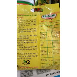 Đạm N: 13%, Kali (K2O): 46%, Độ ẩm: 1%.