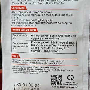 Thành phần: Axit humic, amino acid, vi sinh vật có lợi, vi lượng (Zn, B, Mn, Cu…), chất kích thích sinh trưởng tự nhiên