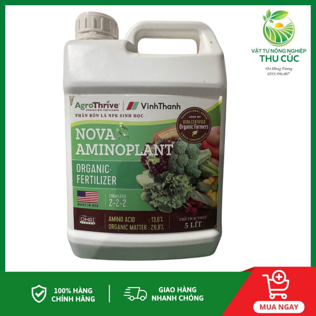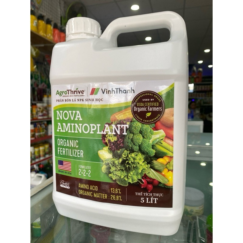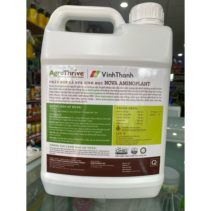Phân Bón Lá NPK Sinh Học NOVA AMINOPLANT Mập Cây – Lớn Trái – Phát Rễ – Cải Tạo Đất Vĩnh Thạnh Can 5 Lít Tiết Kiệm