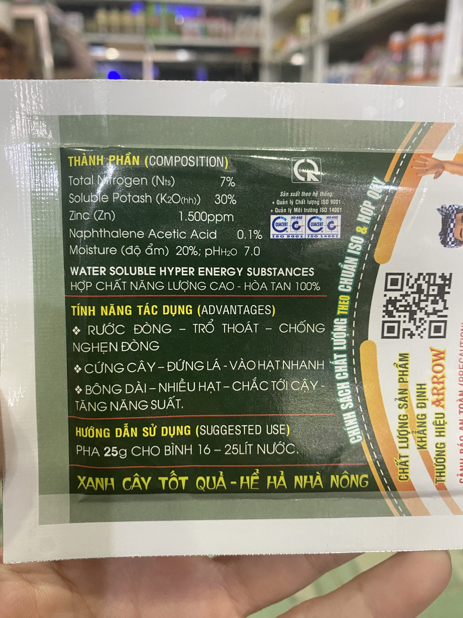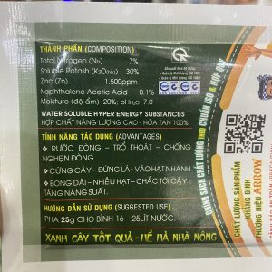 Liều lượng: 25g cho bình 16 lít nước.