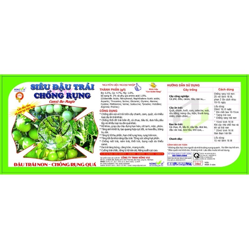 Siêu Đậu Chống Rụng Trái Nông Vui, Canxi – Bo – Magie