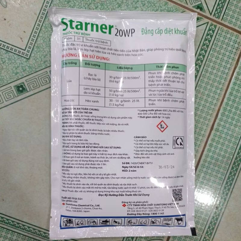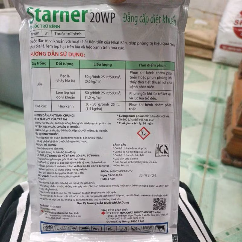 STARNER 20WP là thuốc trừ bệnh có nguồn gốc sinh học, chuyên dùng để phòng và trị các loại bệnh do vi khuẩn gây ra trên nhiều loại cây trồng. Với hoạt chất Oxolinic acid 20%, STARNER 20WP được đánh giá là “vũ khí đặc trị vi khuẩn” cực kỳ hiệu quả, an toàn cho cây và thân thiện với môi trường.