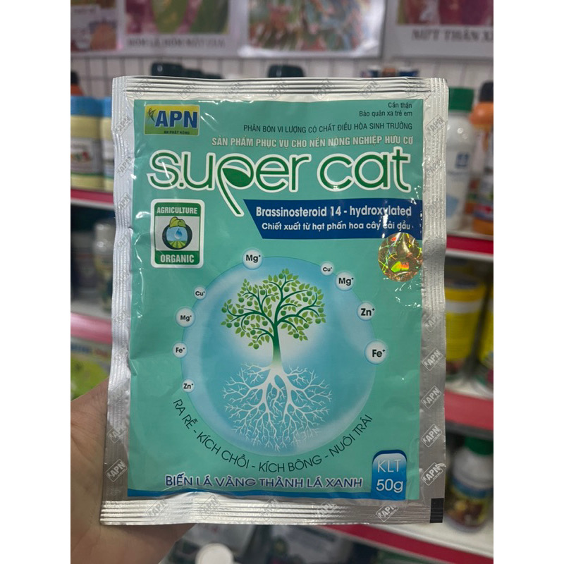 SUPER CAT gói 50g là sản phẩm dinh dưỡng chuyên dụng giúp kích chồi – kích rễ – kích bông – nuôi trái, đồng thời chống sốc nhiệt – chống rụng hoa và trái non cực hiệu quả. Đây là giải pháp tối ưu dành cho người trồng cây ăn trái, cây công nghiệp và rau màu muốn cây khỏe mạnh, cho năng suất cao và ổn định.