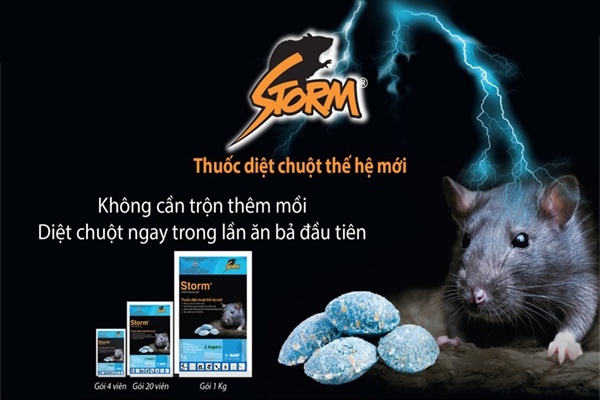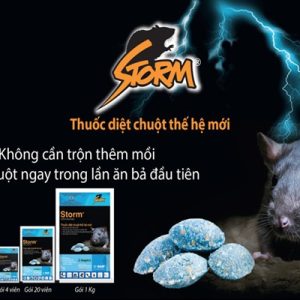 Thuốc Diệt Chuột Storm là sản phẩm nổi tiếng được sử dụng rộng rãi trong nông nghiệp và sinh hoạt hằng ngày. Với công thức độc quyền từ BASF (Đức), Storm giúp tiêu diệt chuột hiệu quả chỉ sau một lần ăn mồi, không gây mùi hôi và hạn chế tình trạng chuột chết trong nhà.