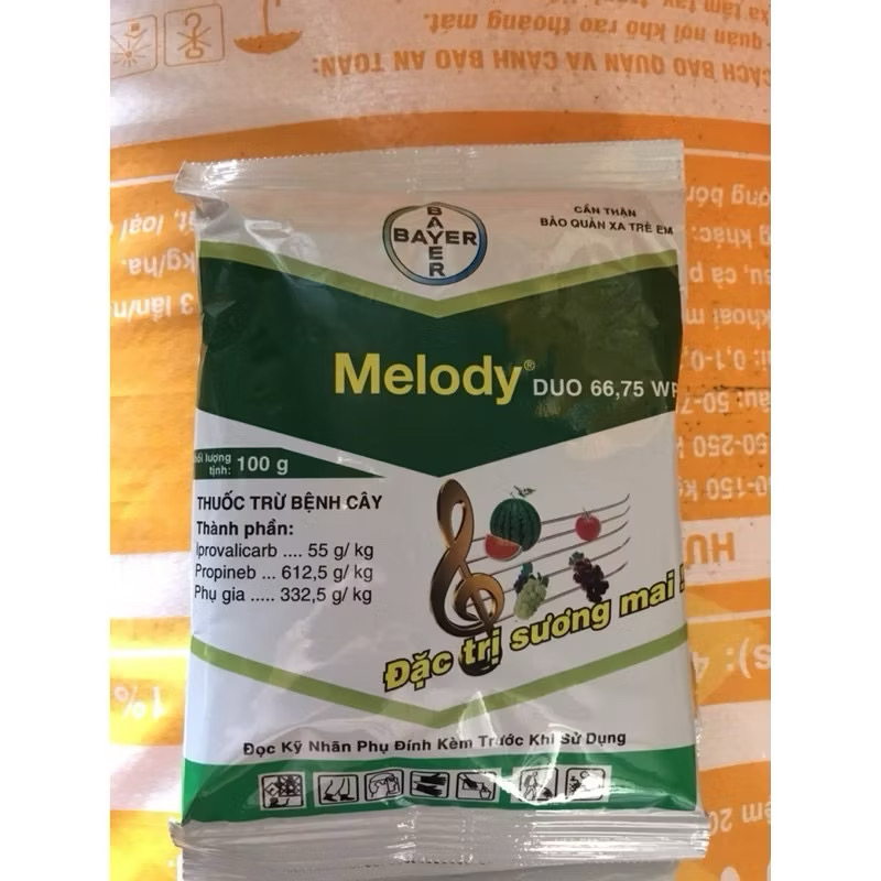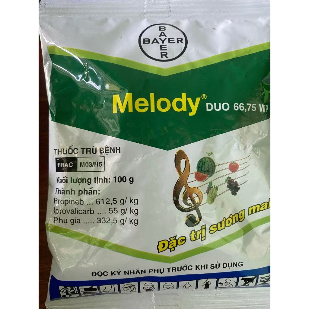MELODY DUO 66,75WP 100gr là lựa chọn hàng đầu trong việc đặc trị sương mai, thán thư và mốc sương trên nhiều loại cây trồng. Sản phẩm giúp cây khỏe mạnh – sạch bệnh – năng suất cao, là giải pháp an toàn và hiệu quả cho bà con nông dân.