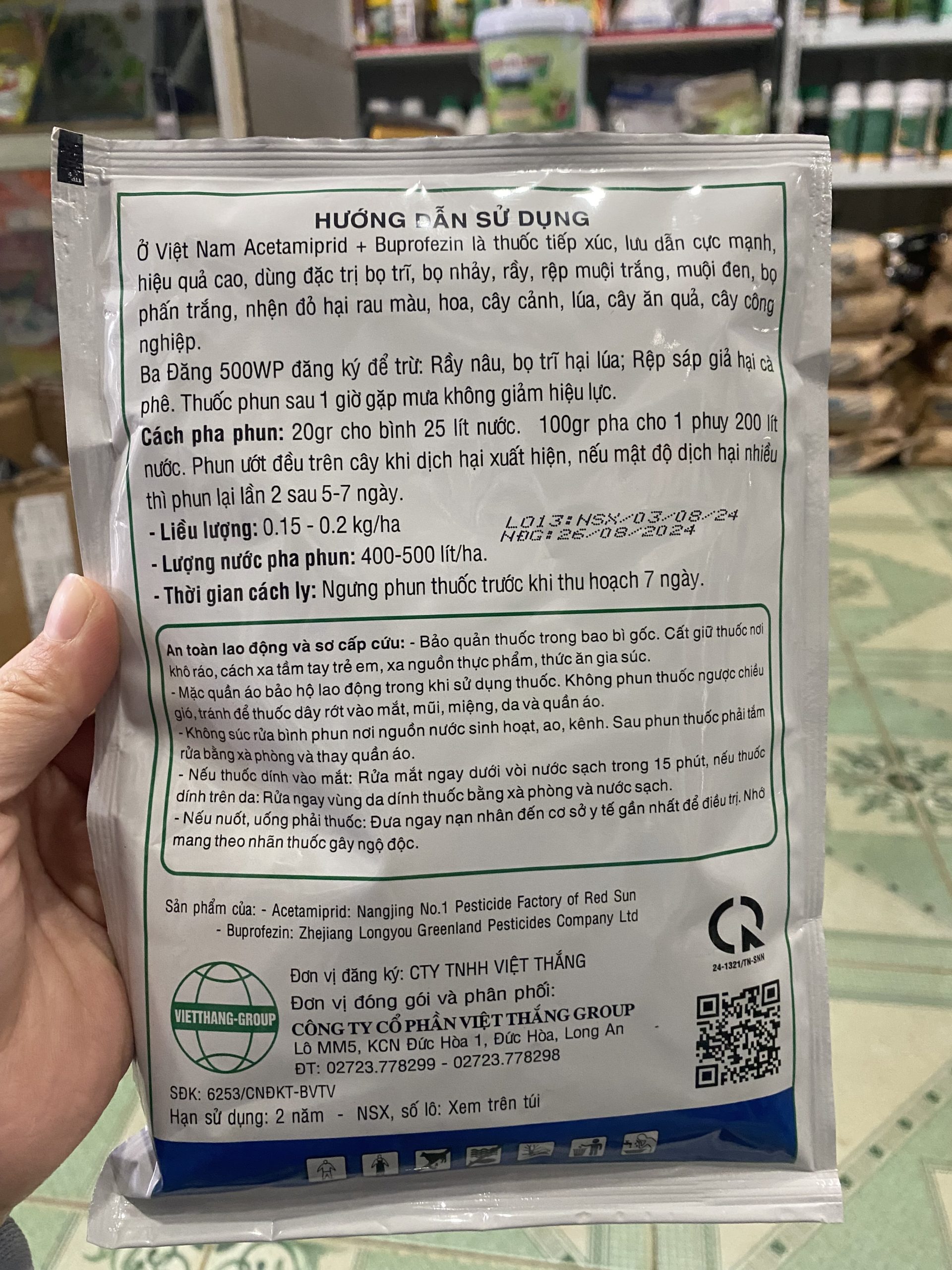 • Pha thuốc: 15–20g Ba Đăng 500WP/ bình 16 lít nước.