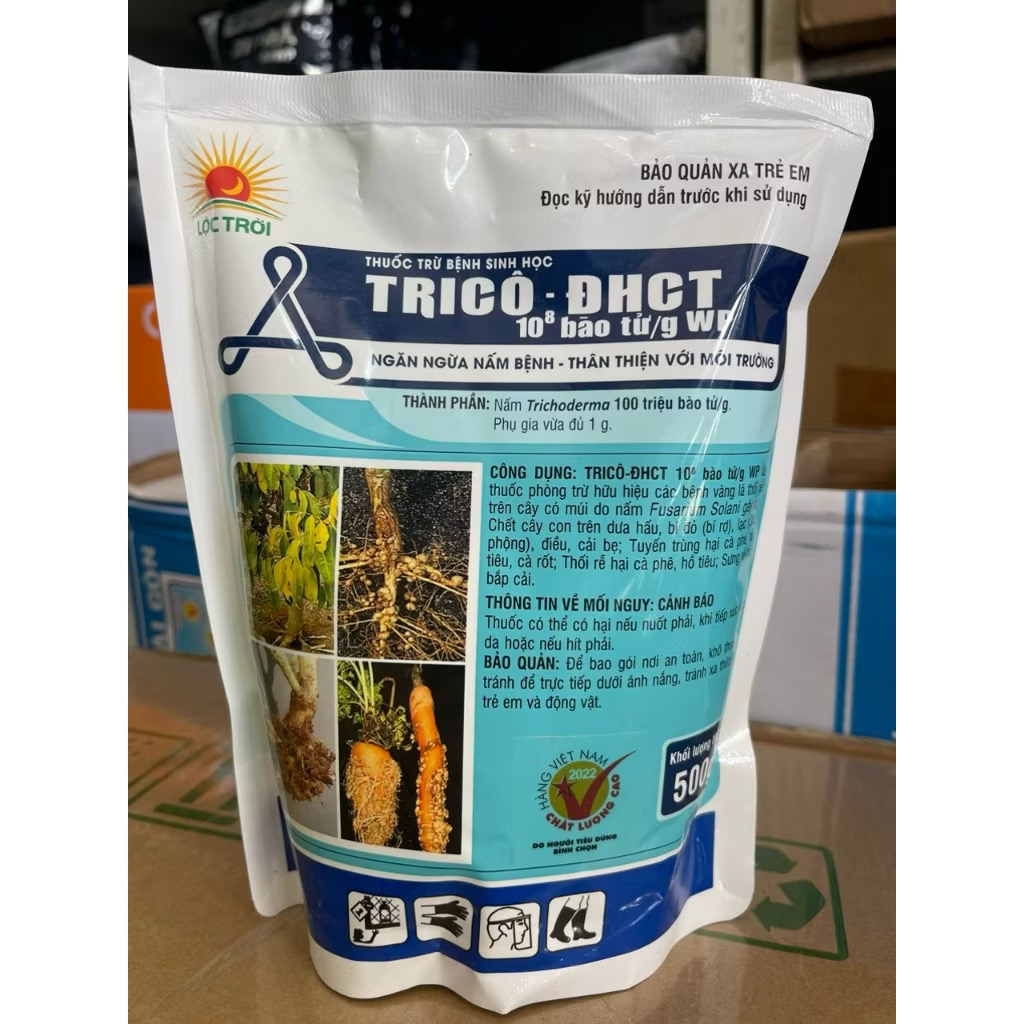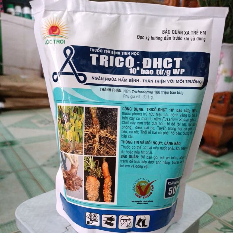 Trichoderma Trico ĐHCT là chế phẩm sinh học được nghiên cứu và sản xuất bởi Trường Đại học Cần Thơ phối hợp với Tập đoàn Lộc Trời. Sản phẩm giúp trừ bệnh hiệu quả cho cây trồng thông qua cơ chế cạnh tranh sinh học, phân hủy mầm bệnh và tăng cường sức đề kháng tự nhiên cho cây.