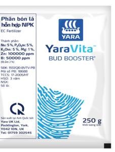 Phân bón lá hỗn hợp NPK Bud Booster có hàm lượng NPK cân đối, lượng kẽm cao cùng các vi lượng Magiê, Bo; Bud Booster giúp cây trồng sinh trưởng khỏe, tăng cường ra hoa kết trái, tăng sức đề kháng bệnh hại, tăng năng suất & chất lượng.