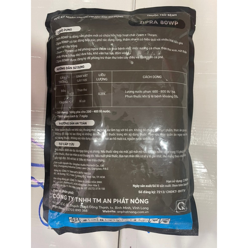 ZIPRA 80WP là dòng sản phẩm mới chứa 2 hoạt chất, chuyên ngừa và trị các bệnh do nấm như thán thư trên cây điều, rỉ sắt cà phê, mốc sương cà chua, thán thư xoài, nứt thân chảy nhựa (chạy dây) dưa hấu, khô vằn hại lúa, đốm vòng,…